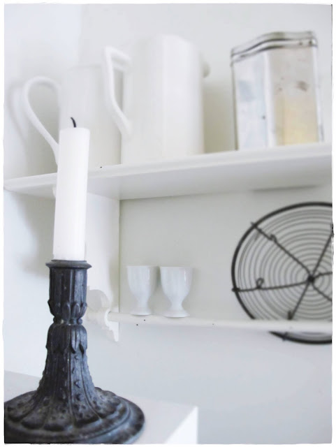 Just a quick update from my tiny kitchen. Only to show how easily more room can be fixed for beautiful junk just by adding a one shelf to the wall. The place is a bit crowded, but that´s the way I like it!