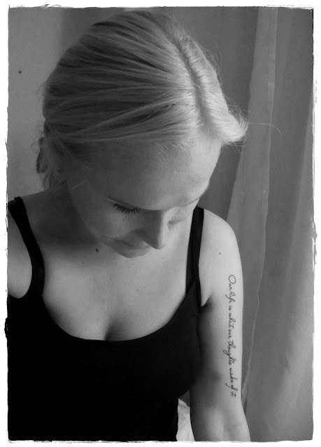 A little bit different posting today. I namely was under ink yesterday, when one of my friends made a tattoo to my left arm. It is a simple text that speaks to me. I don´t know where I got this idea (haven´t seen it anywhere yet), but still it felt right for me. Still it took me almost one year to make it real – not something I would do without thinking it through. I´m very happy that I had the courage, this piece of body art is truly part of me now.