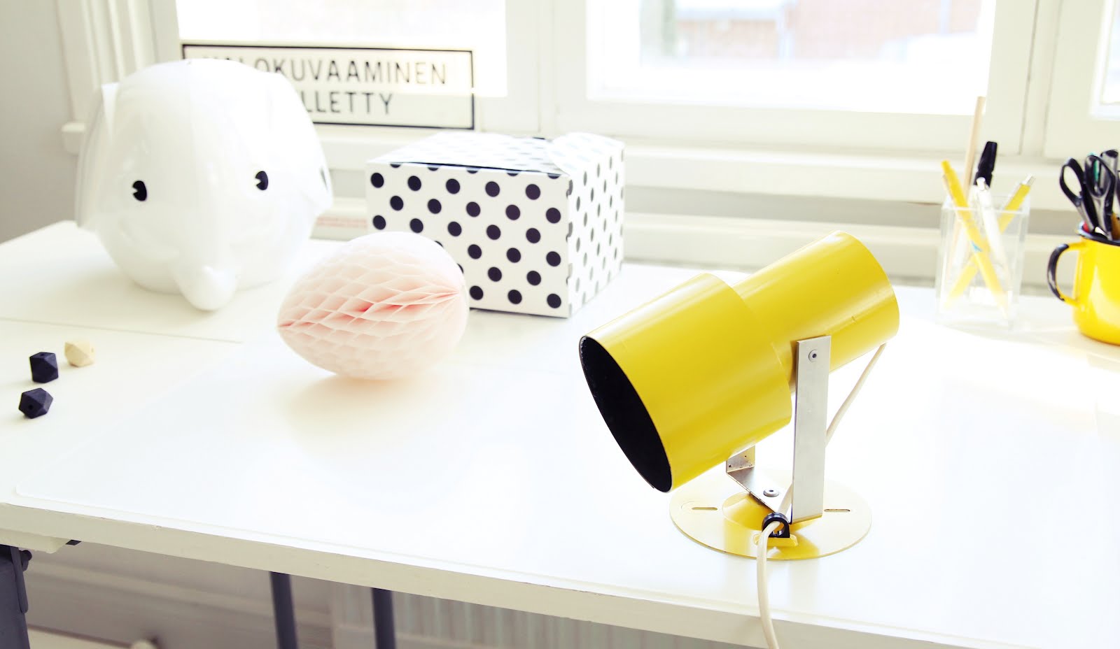 Merimies on ihan paras ja nikkaroi puutöissä kaksi puista jakkaraa, joista toisen maalasin keltaiseksi ja toisen valkoiseksi. Kumpikohan olis mun suosikki…hmmm. Retrospotti löytyi kirppikseltä perjantaina – pesu teki ihmeitä ja lamppu muuttui nuhjusta melkein kuin uudeksi 🙂 Ah mitä karkkia! Tätä ei pilaa enää muu kuin puolikuntoinen olo, josta taitaa olla kehkeytymässä flunssa… Parempaa sunnuntaina teille muille!