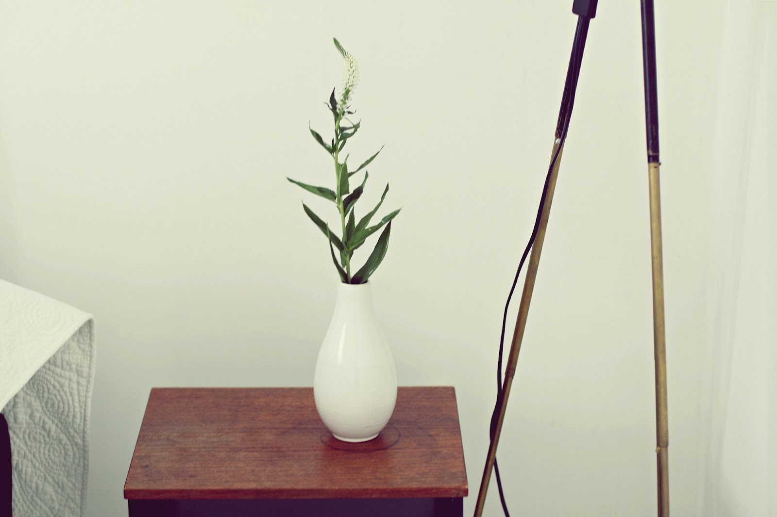 Sometimes things are like made for each other. Two things combine something so nice that nothing else is needed. Like the flea find vase and one simple flower. Like a vintage tripod and a retro lamp. These are my favorite combinations today. Now I need to hurry up as we are having dinner guests and I have quite a lot of things to do!
