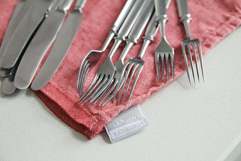 Korhoanna is the lucky winner of the MONO kitchen towel giveaway, congrats! On the pics my latest flea finds, old forks and knifes designed by Sorsakoski for Hackmann. My grandma has these, so they bring up many childhood memories for me 🙂